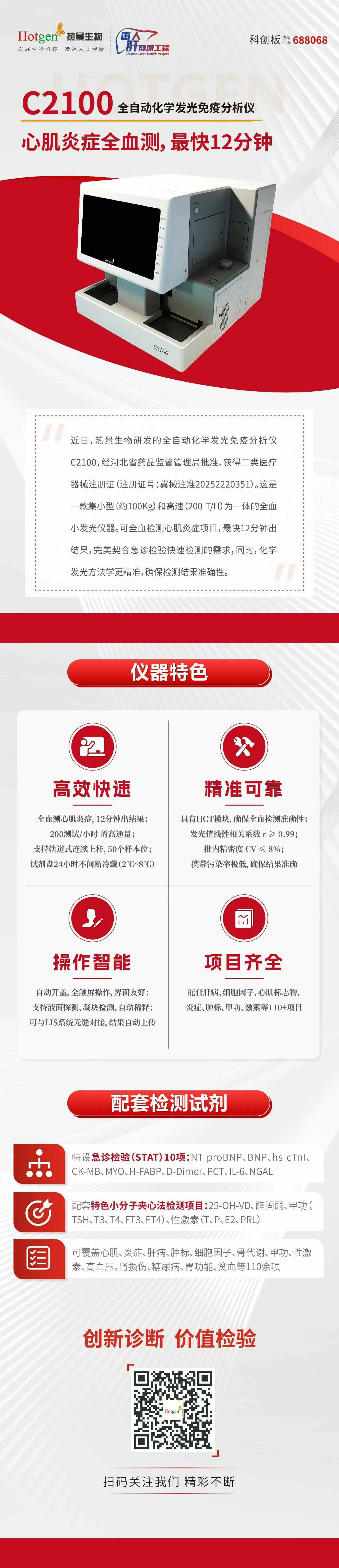 新品上市!更小、更輕、更快!熱景生物桌面式全血小發(fā)光C2100來啦