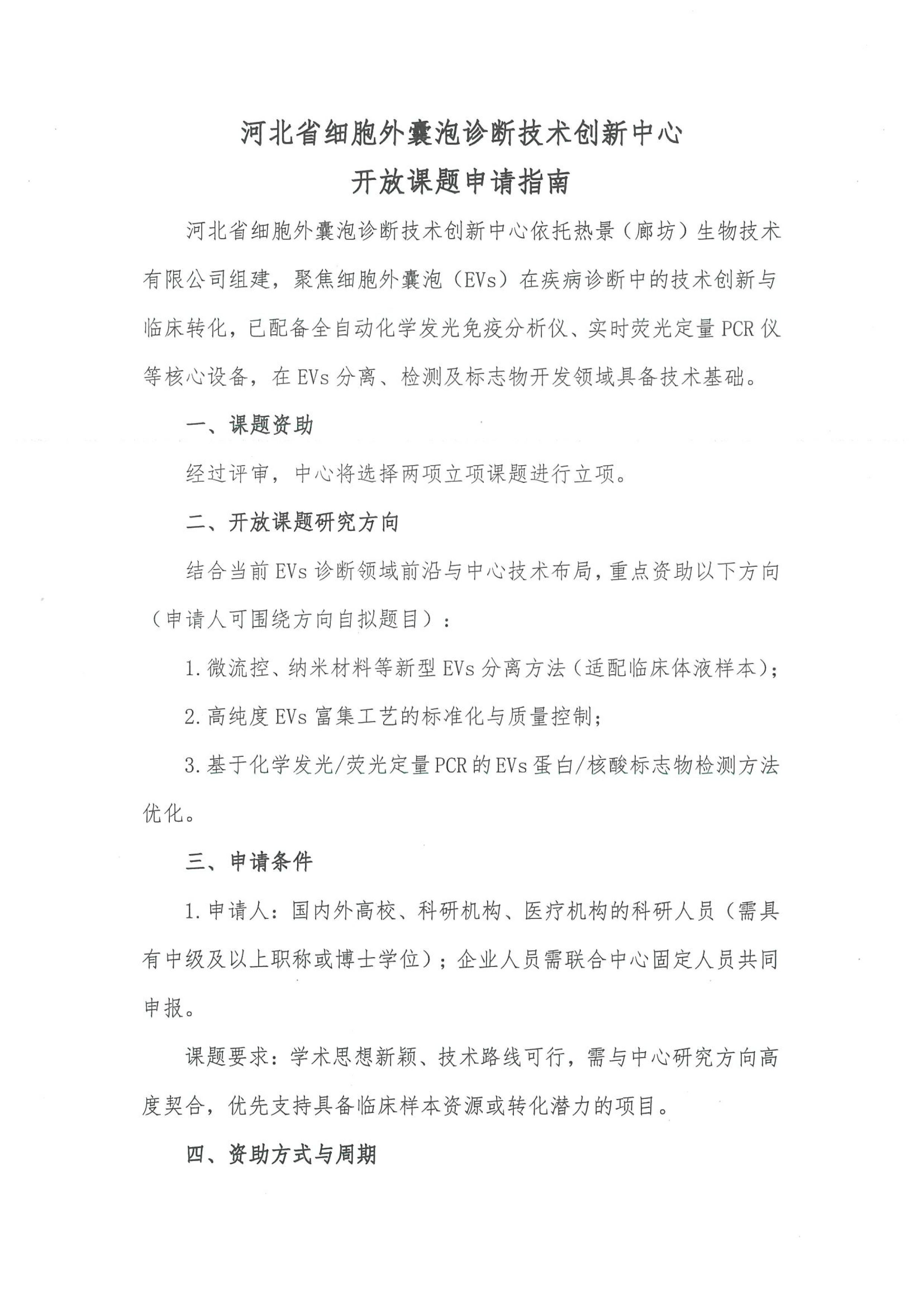 河北省細胞外囊泡診斷技術(shù)創(chuàng)新中心開放課題申請指南