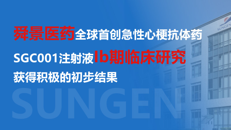重大突破!舜景醫藥「全球首創」急性心梗抗體藥SGC001Ib期臨床研究...