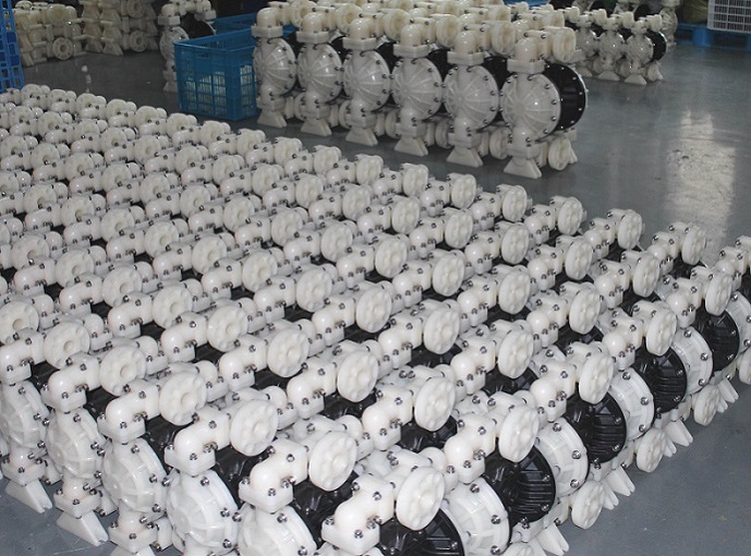 粉末型隔膜泵,是用來輸送固體粉末狀物料的。固體粉末狀物料只有在保持半流動狀態下,才不至于在泵腔體內被壓縮成近似固體的塊狀導致輸送失敗和損壞泵。因此,用于輸送液體的普通雙隔膜泵是無法正常用于固體干粉輸送的。系統需增加一組特殊的閥,在每個泵循環中,根據一定的時間順序,將壓縮空氣(或其他的惰性氣體)同步引入泵的腔體,使在粉體的泵送過程中保持流動狀態。