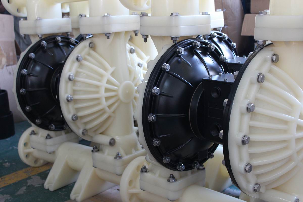 工程塑料氣動隔膜泵是以聚丙烯為材質(zhì)的氣動隔膜泵,具有質(zhì)量可靠使用壽命長、噪音底、震動小、揚程高、永不死機、做工精細等六大優(yōu)點,即能抽送流動的液體,又能輸送一些不易流動的介質(zhì),具有自吸泵、潛水泵、屏蔽泵、泥漿泵和雜質(zhì)泵等輸送機械泵的許多優(yōu)點。膜片可采用普通膜片或耐腐蝕膜片。